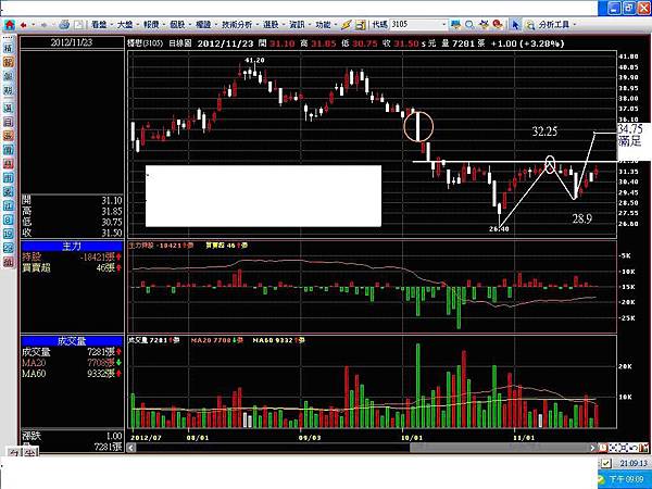 4.一些高卷資比的股票空方都要小心,*******************。令一檔低價功率放大器(PA)3105穩懋它也是Q3財報,稅後盈餘季增29.6%表現較亮眼,我們看一下它技術面,穩懋它的短底如能突破32.25,滿足約在34.75,也就是會碰10/4大量黑棒的一半那邊也是壓力,它週5再台股大漲下並未過壓力32.25,還是建議近***操作多單,用***當停損,